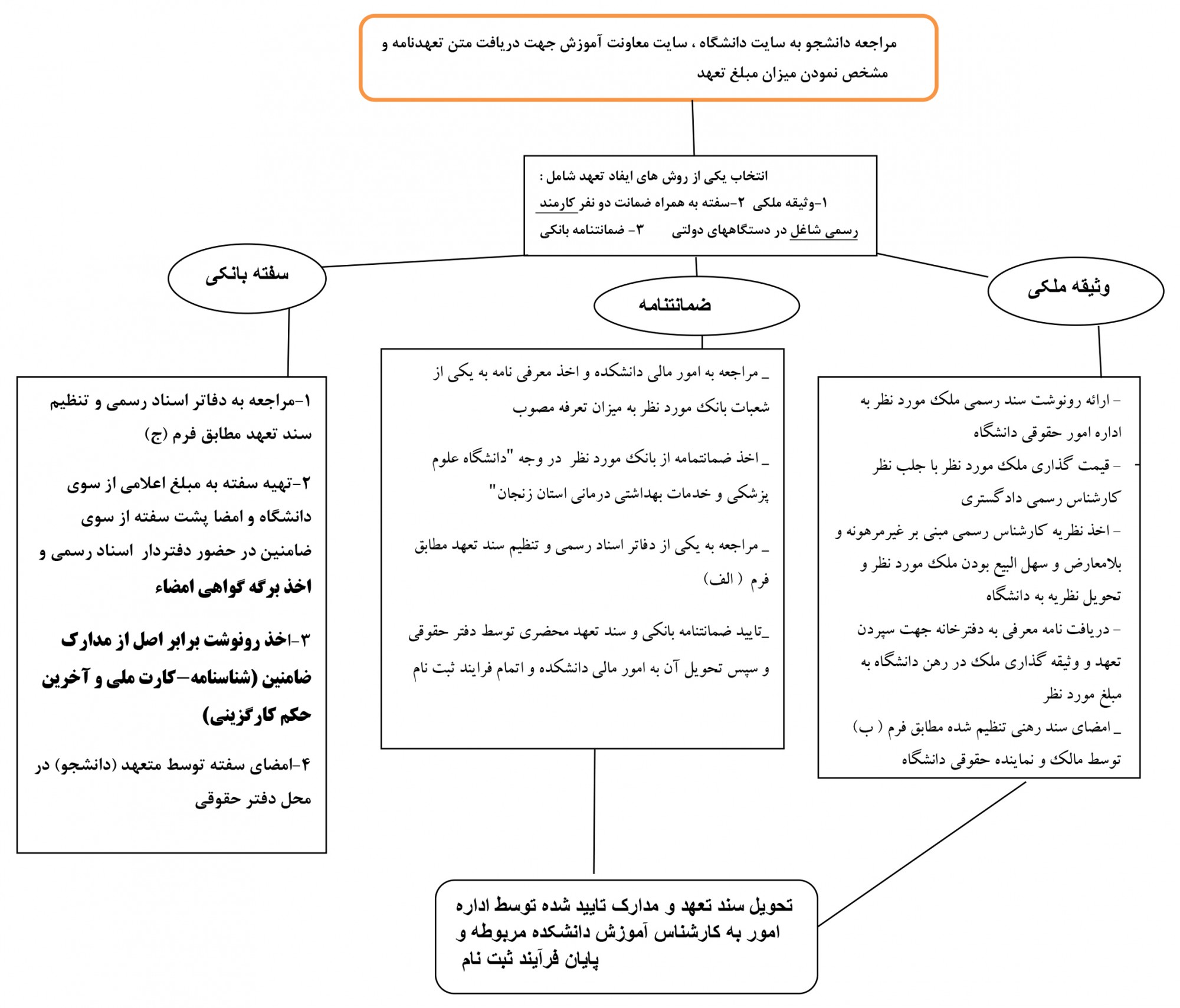 • مهم: ضامن حتما باید شاغل باشد و حسب ماده ۹۶ قانون اجرای احکام مدنی بازنشتگان محترم امکان تضمین تعهدات دانشجویان را نخواهند داشت.