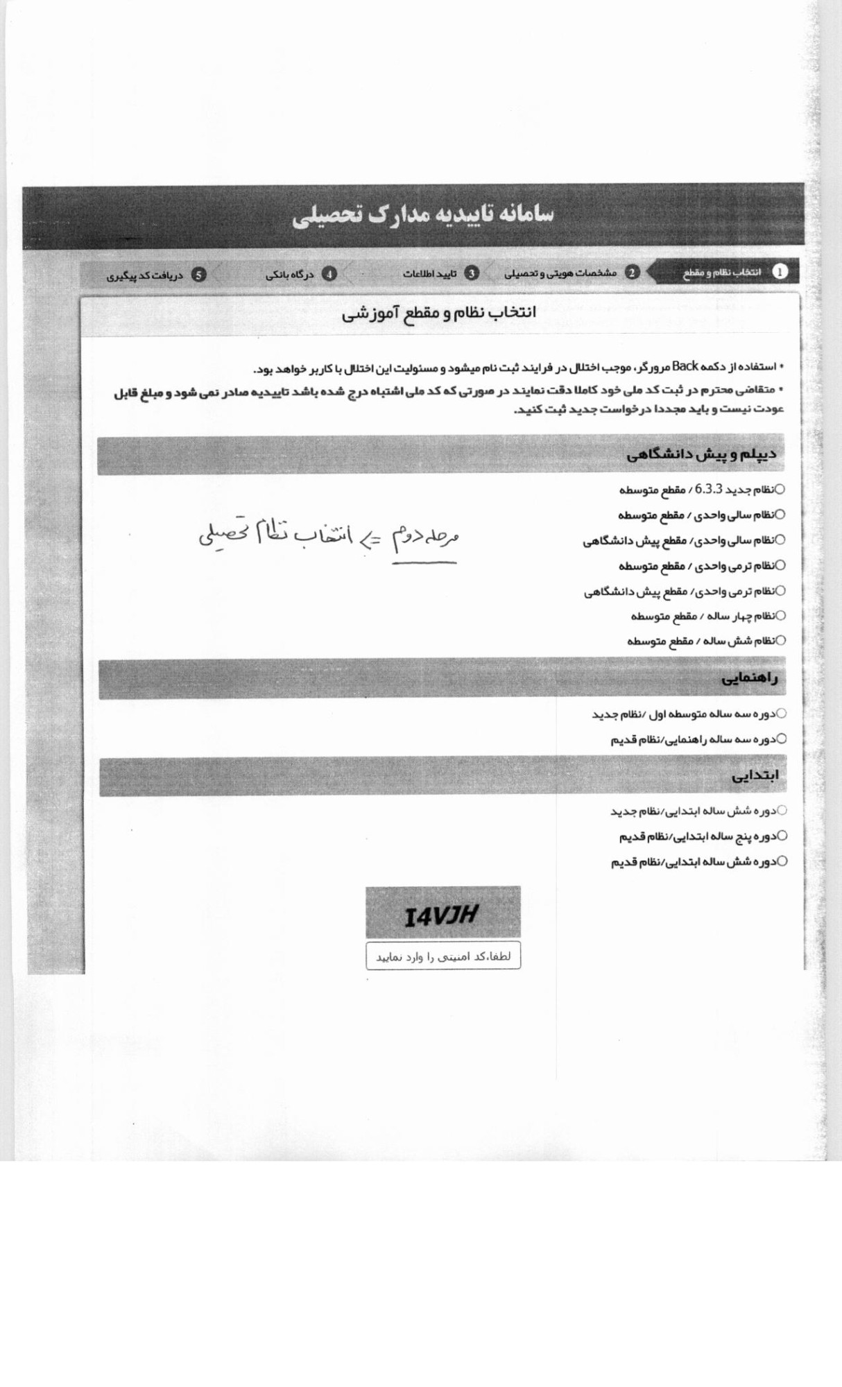 • نوع مدرک لزوما باید تاییدیه تحصیلی انتخاب شود