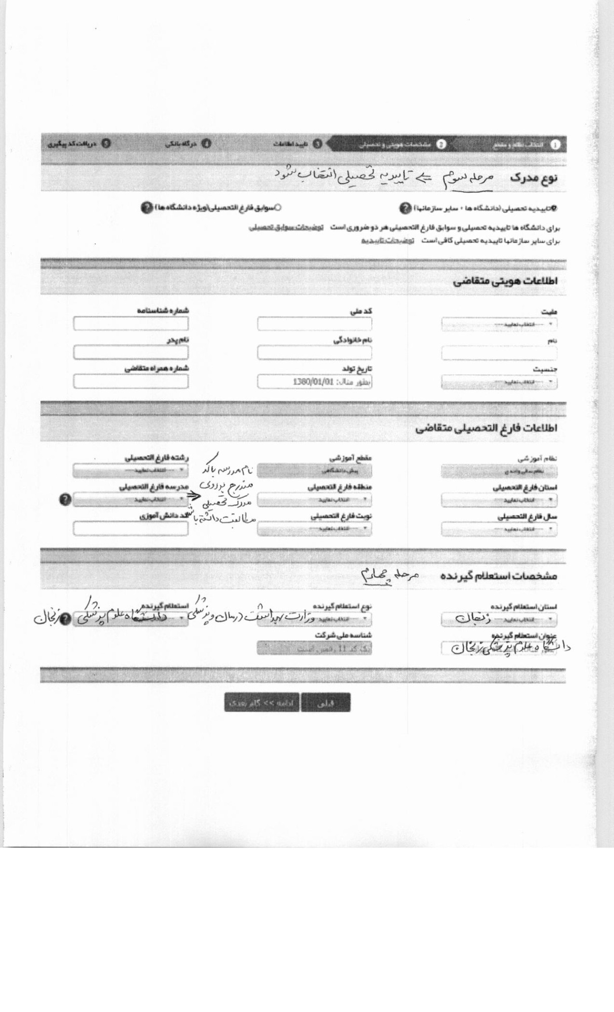 • در قسمت اطلاعات فارغ التحصیلی متقاضی، نام مدرسه فارغ التحصیلی باید با کد آموزشگاه مندرج بر روی مدرک تحصیلی مطابقت داشته باشد